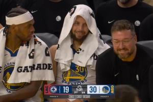 滿眼都是羨慕!哈登合球造成霍福德犯規(guī)2+1 庫里在板凳看著其苦笑
