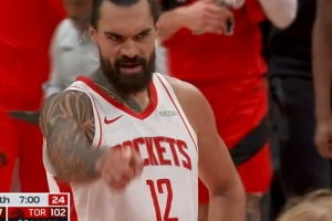 你還有這一手?亞當斯反吊小賈巴里-史密斯 后者吃餅吊筐暴扣!