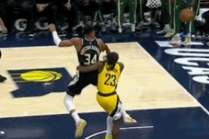 動(dòng)作有點(diǎn)大!字母哥反擊被內(nèi)史密斯放倒 后者被吹一級(jí)惡意犯規(guī)