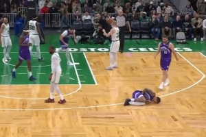 有點(diǎn)危險(xiǎn)!布朗撲防后手撩陰小基昂特 裁判給普通犯規(guī)后者3罰全中