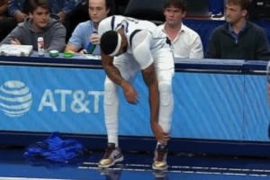 別有事?。饷悸涞夭鹊綄?duì)方腳上疑似崴傷 返回更衣室接受治療