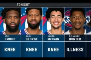 均傷兵滿營(yíng)!76人vs騎士共6人缺席:恩比德/喬治/亨特/斯特魯斯等
