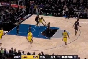 艾頓單打戈貝爾突破完全被罩住 無奈跳起傳球直接失誤出界