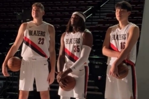 足籃聯(lián)動(dòng)!霍勒迪&阿夫迪亞造訪女足波特蘭荊棘隊(duì) 阿福顛球秀球技