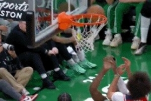 誰碰進(jìn)的這是?布朗籃下被帽與對(duì)手爭(zhēng)籃板球直接進(jìn)筐