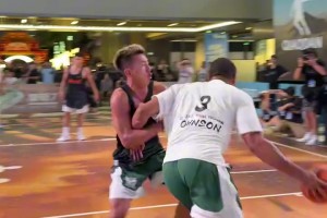 練起來!楊瀚森賽前和夏普一起進(jìn)行三分投籃熱身