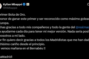 榮獲歐洲金靴!姆巴佩社媒:感謝隊友、皇馬的每一個人和皇馬球迷