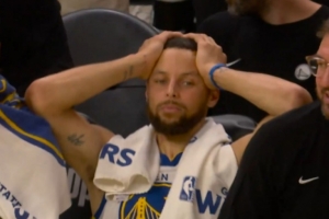 小子偷我技能包?波斯特彩虹三分命中 場下庫里雙手抱頭生無可戀