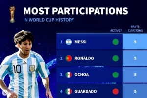 再戰(zhàn)一屆?德轉(zhuǎn)列已參加5屆世界杯球員:現(xiàn)役僅梅西、C羅、奧喬亞