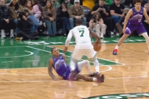 這不是犯規(guī)?基昂特-喬治滑倒鏟翻杰倫-布朗 裁判沒(méi)有吹罰