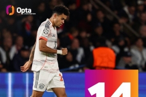 迪亞斯在歐冠比賽中打進(jìn)14球,并列哥倫比亞球員最多