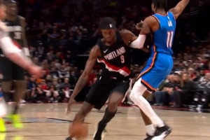 夾手臂了!格蘭特突破被吹進(jìn)攻犯規(guī)&開(kāi)拓者挑戰(zhàn)失敗