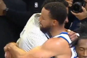 聊了點(diǎn)啥?庫(kù)里賽后和哈利伯頓擁抱寒暄 后者喜笑顏開(kāi)