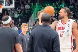 一本正經(jīng)的海王!申京和奧科吉頭球傳球玩得正嗨 亞當(dāng)斯直接搶斷