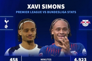 水土不服?西蒙斯德甲每90分鐘參與0.69球,登陸英超7場聯(lián)賽僅1助